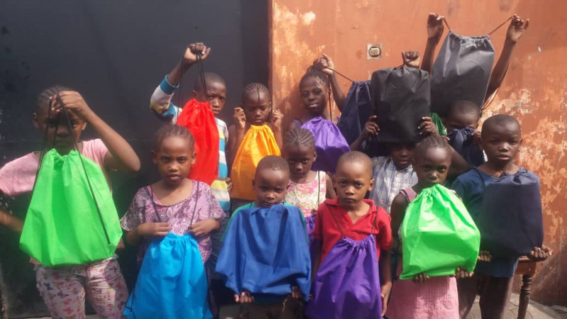La distribution a été faites aux enfants de l'orphelinat Notre Dame de la Divine Miséricorde, tenu par Madame Augustine BABINGUI. Plus d'une quarantaine d'enfants ont pu bénéficié de ces lots.